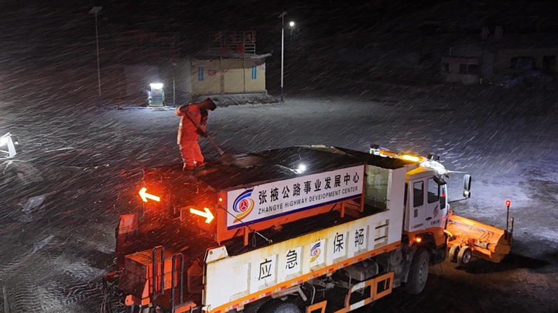 接到气象预警后,山丹公路段立即组织召开除雪保畅岗前安全技术交底会,安排职工驻扎国道312线山丹服务区应急保畅点,提前完成除雪机械检修、融雪剂装填、防滑料储备及人员编组等准备工作。