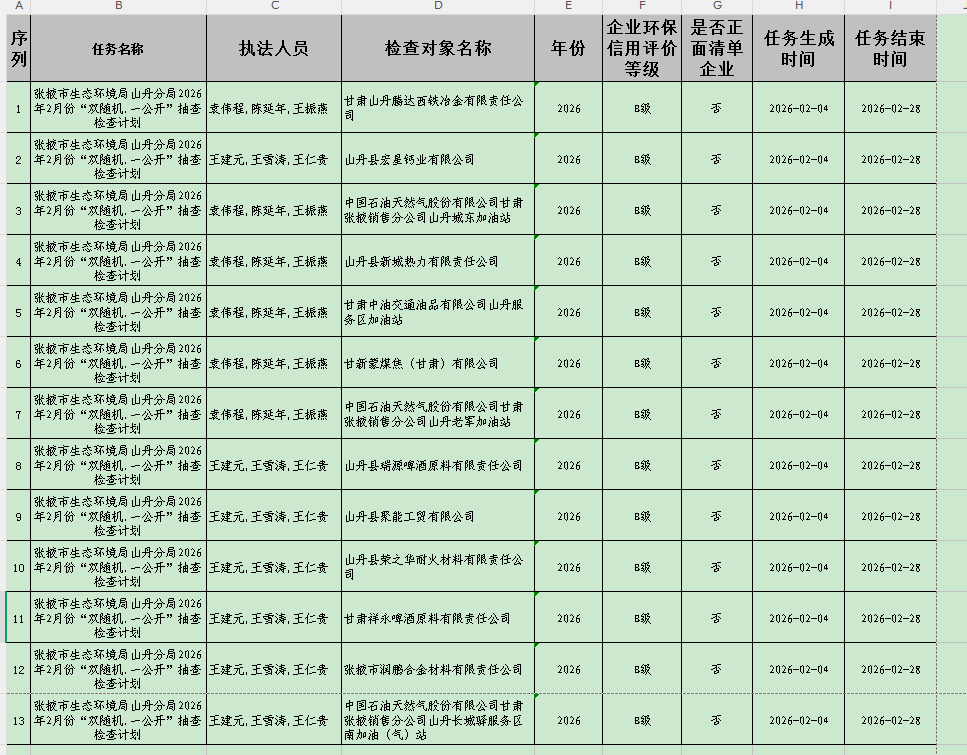 按照“双随机、一公开”工作公示要求,现将2026年2月份“双随机、一公开”现场检查抽查对象予以公示。