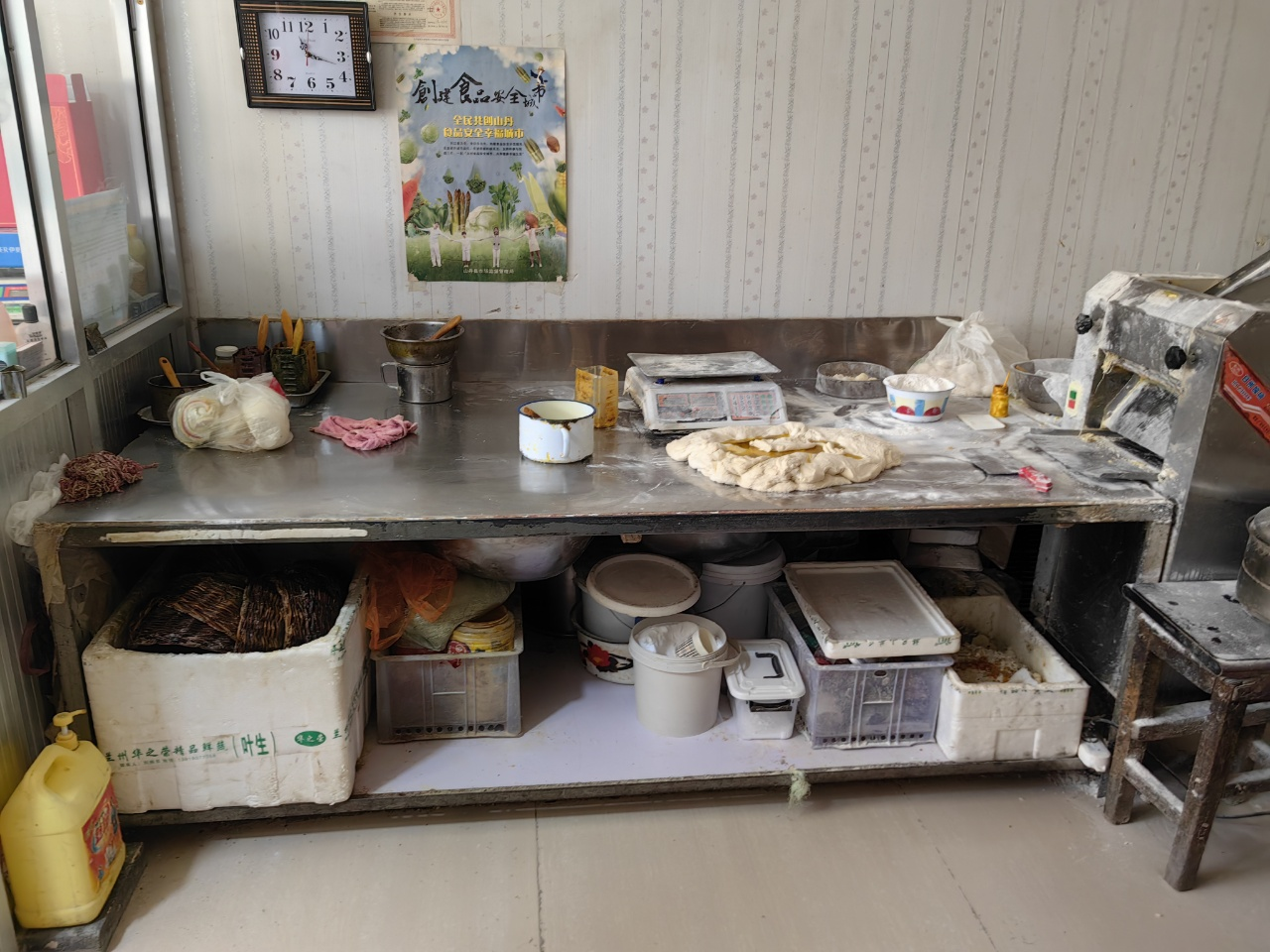 2.用具未及时清理污垢,物品堆放杂乱;