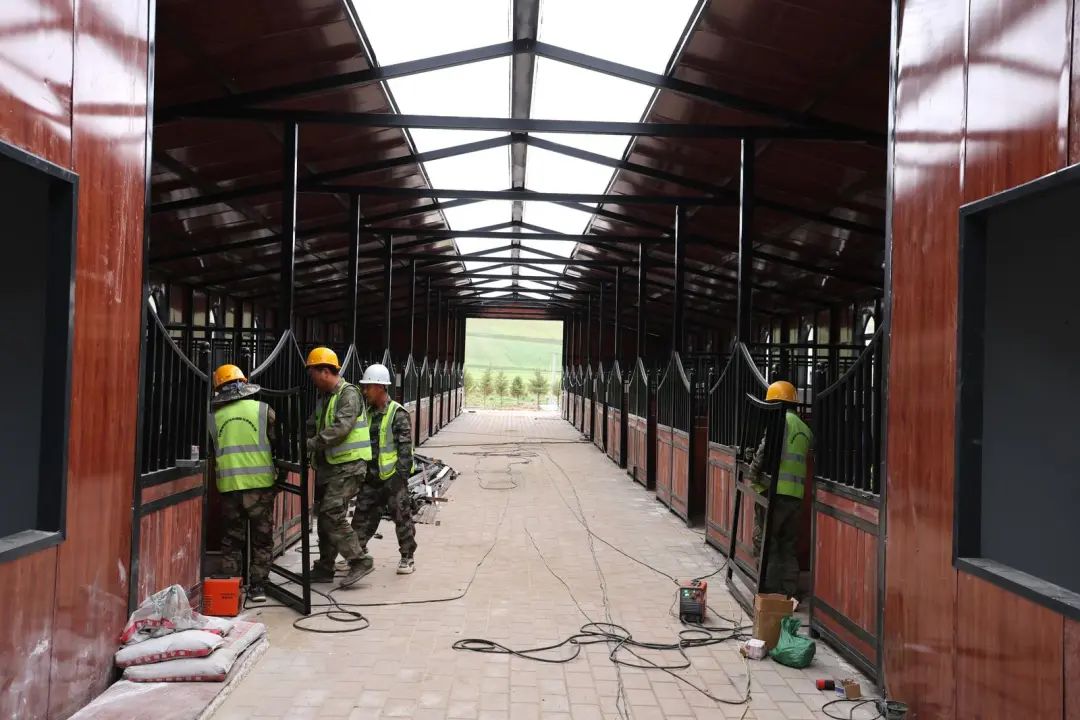 走进庄园,功能分区的细节正从蓝图走向现实。1100平方米的高标准马厩(40间)主体已竣工,正在进行内部装修;阿根廷纯血马、俄罗斯奥尔洛夫、阿拉伯马、汗血马、盎格鲁马等5个品种的320匹良种马已“蓄势待发”,静待新舍启用。