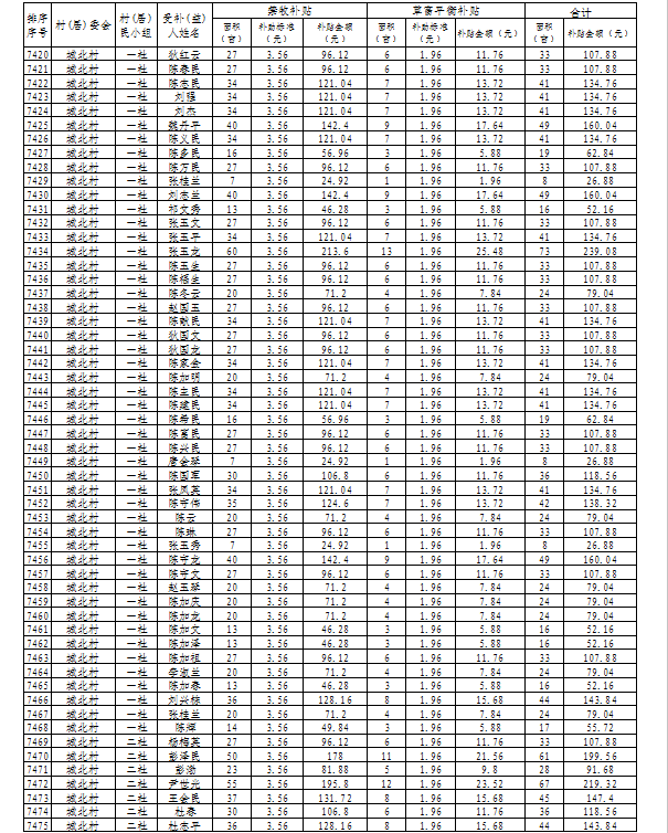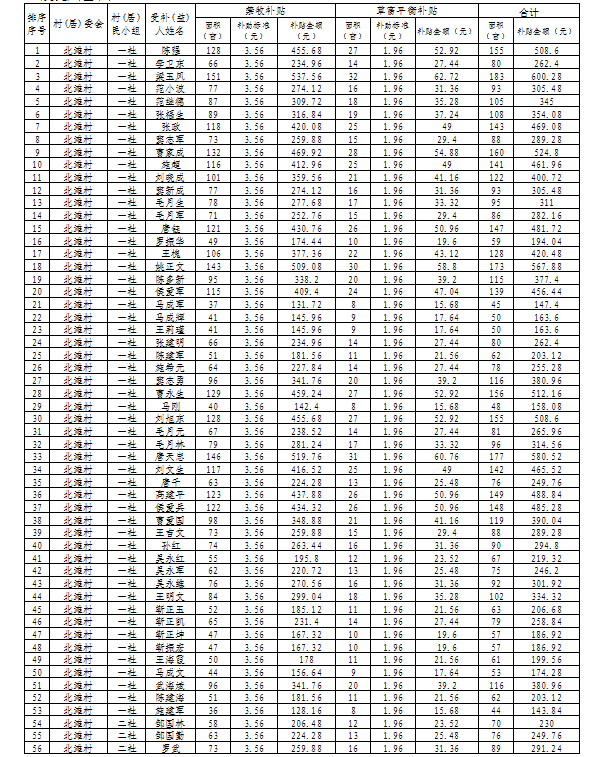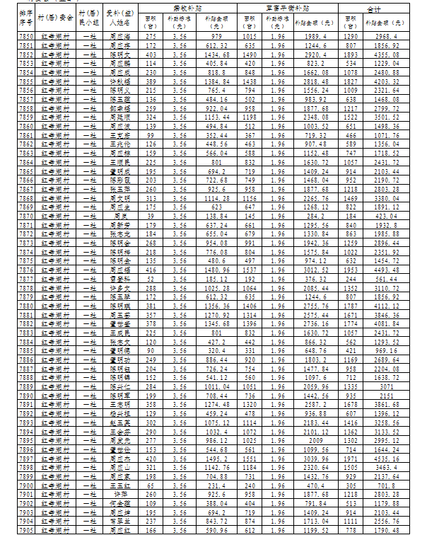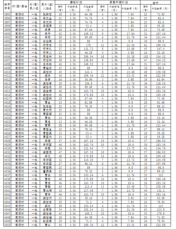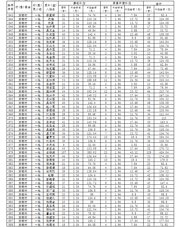 山丹县清泉镇2024年落实草原生态保护补助奖励资金发放花名册