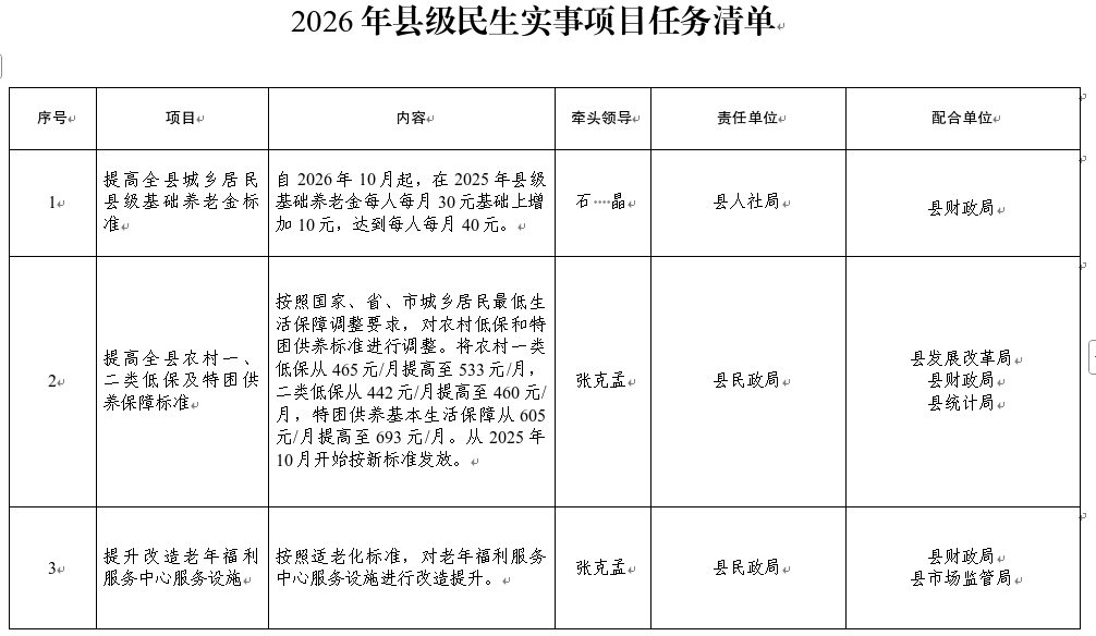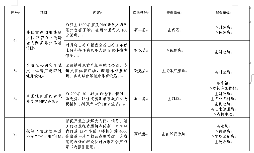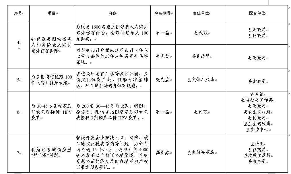 配合单位:各乡镇,县民政局、县财政局、县农业农村局、各乡镇卫生院