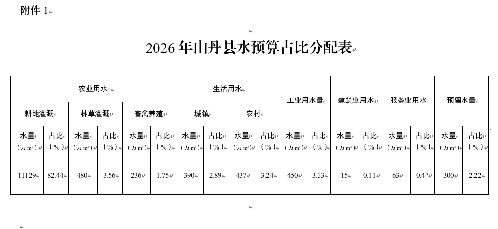 附件:1.2026年山丹县水预算占比分配表