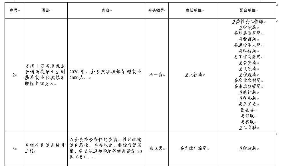 2026年,省10件民实事涉及我县9件,市12件民实事涉及我县10,县十九届人大五次会议审议通过10件县级民生实事。为确保各项任务全面落实,根据甘肃省人民政府办公厅关于印发202610件为民实事实施方案的通知》(甘政办发〔202610号)和《张掖市人民政府办公室关于印发2026年市级民生实事实施方案的通知》(张政办发〔20269号)要求,县直相关部门结合我县实际制定了2026年民生实事实施方案,政府同意,现印发你们,请认真组织实施。
