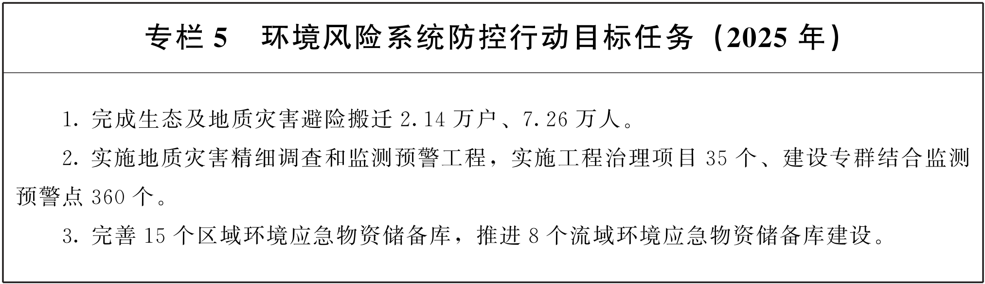 (二十三)加强自然灾害监测预警及防治。健全完善“调查评价、监测预警、综合治理、能力建设”四大体系。加强防灾基础设施建设,强化重点地质灾害隐患点勘查,完善“人防+技防”地质灾害监测预警体系,实现重点防范区市县级地质灾害气象风险预警预报全覆盖。持续推进重大地质灾害隐患点综合治理,对部分特大型、大型地质灾害隐患开展工程治理,实施生态及地质灾害避险搬迁工程,有效应对地震、暴雨、洪涝等引发的次生突发环境事件。常态化开展扑火实战演练,加密部署中高风险地区森林草原火险监测站点。(责任单位:省自然资源厅、省林草局、省地震局、省气象局、省应急厅)