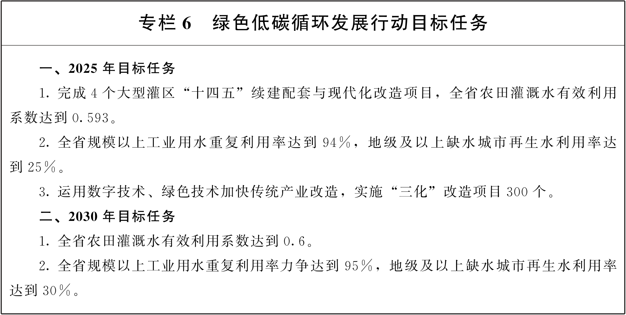 (二十五)加强水资源循环利用。持续推进大型灌区续建配套与现代化改造,推广高效节水灌溉水肥一体化建设模式。加快开展工业节水减排,实施重点用水企业和园区水效领跑者引领行动。实施城乡老旧供水设施、管网和高耗水服务业节水改造。加快甘州区、临夏市2个国家典型地区再生水利用配置试点建设。推进庆阳市城市再生水(中水)利用工程。(责任单位:省水利厅、省农业农村厅、省发展改革委、省工信厅、省自然资源厅、省生态环境厅、省住建厅)