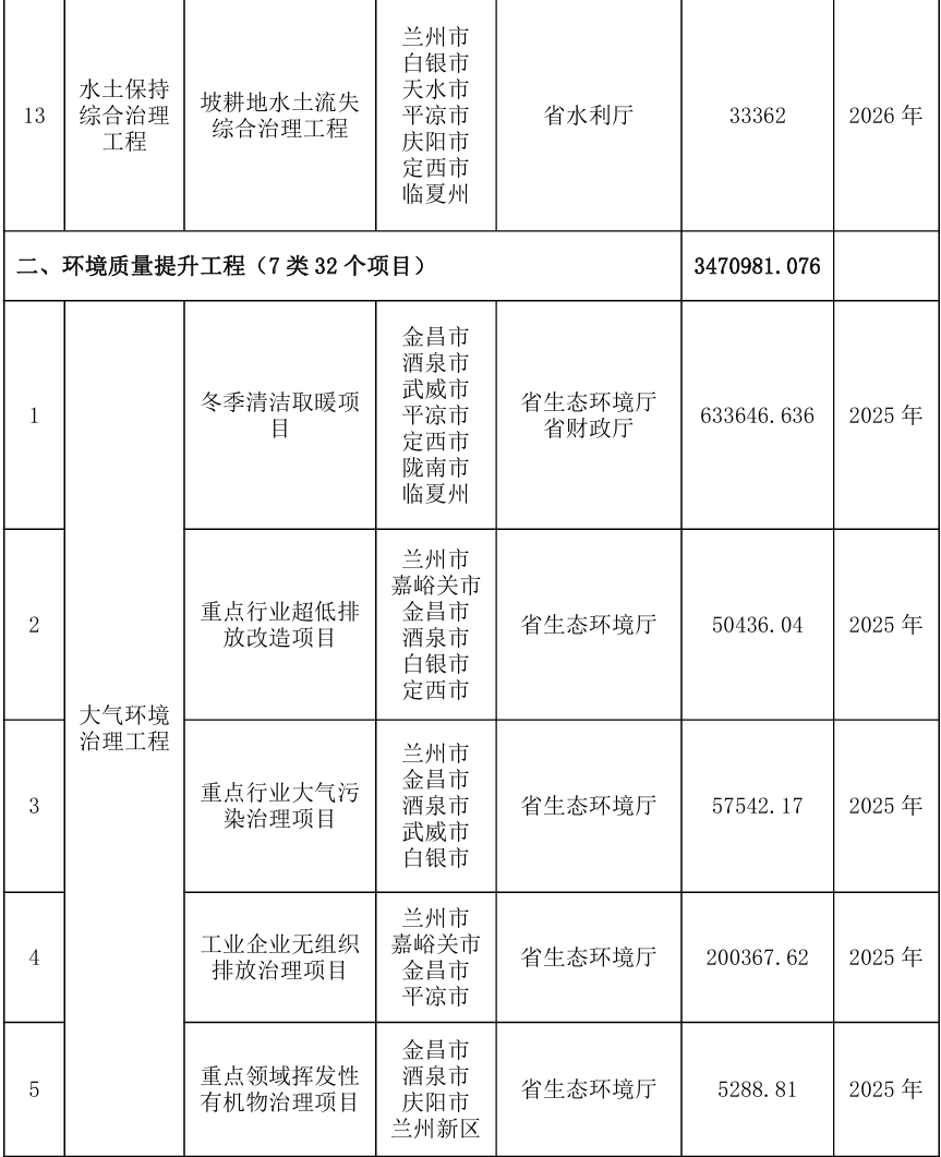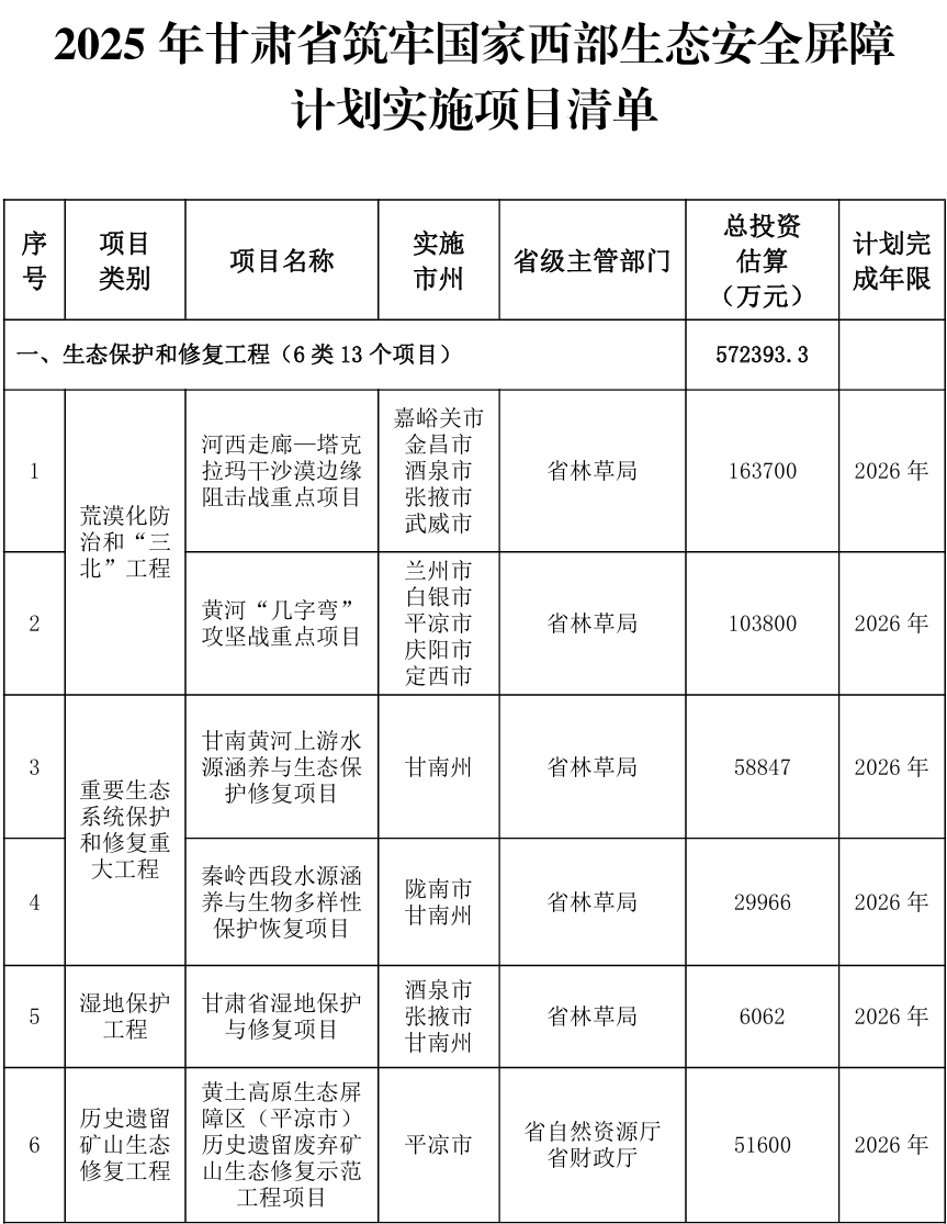 附件:2025年甘肃省筑牢国家西部生态安全屏障计划实施项目清单