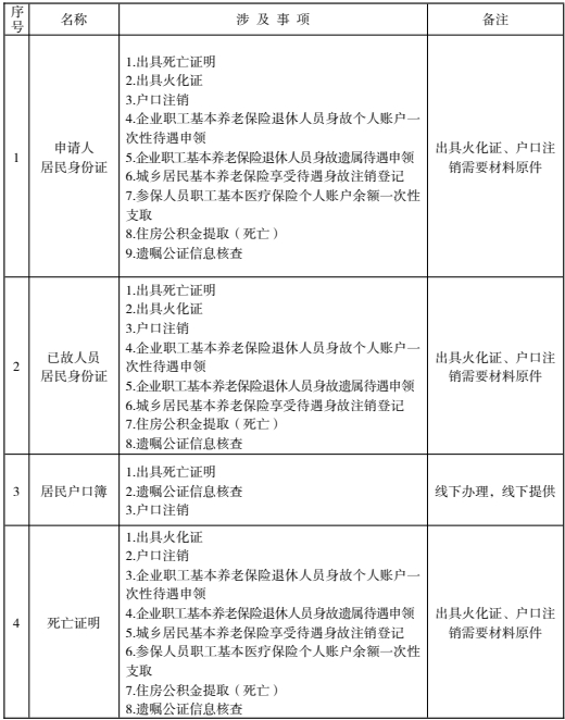个人身后“一件事”资料清单