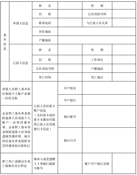 个人身后“一件事”申请表